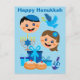 Happy Hanukkah, Happy children with presents, doughnuts, doves on white background
