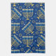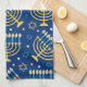 Happy Hanukkah, Menorah, Jewish star, blue kitchen towel.