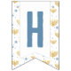 Personalize this blue and gold Happy Hanukkah typography bunting banner with any word or phrase 16 letters or fewer. The steel blue lettering and menorah and Star of David pattern combined with hand-drawn typography gives it a hand-made vibe. Phrases that fit nicely with one space at beginning and end include "Happy Birthday," "Under the Seas," and "Celebrate Love." "Merry Everything" and "Believe in Magic" are exactly 16 characters. For blanks / spaces, use ALT + 7 {numeric keypad} for a round dot / bullet.