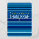 Celebrate the Festival of Lights with this vibrant "Happy Hanukkah" design featuring a stylized menorah and the Star of David against a background of varying shades of blue stripes. This festive and modern design is perfect for sharing the joy and warmth of Hanukkah with friends and family.