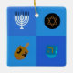 Happy Hanukkah Menorah and Dreidels Ceramic Ornament
