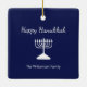 Happy Hanukkah Menorah Simple Blue White Ceramic Ornament