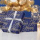 Happy Hanukkah faux gold and navy blue modern elegant script pattern gift Wrapping Paper.