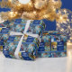 Happy Hanukkah Photo Collage Personalized Blue Wrapping Paper