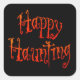 "Happy Haunting" text in spectral orange letters, with a few ghostly eyes, a humourous design for a haunting Halloween