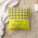 Happy Heart`s Day Yellow and Grey Heart Pattern Valentine`s Day Pillow