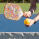 You'll be playing in style with this cool pickleball paddle featuring a hippie-style inspired design of happy, colourful flowers. Add 3 lines of custom text - name, monogram, pickleball club name, company name, location, phone number, etc. A perfect gift for kids, parents, grandparents, friends, clients, bridal party, beginners and experienced players alike - you're sure to be the talk of the pickleball court.