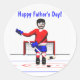 Stickers with my computer artwork of a funny hockey player with a black eye and missing teeth, standing on the ice in front of a goalie net. Text says "Happy Father's Day!"