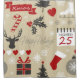 Seamless Happy Holidays design Christmas symbols - snowflakes, deer, calendar, Christmas tree, Christmas gift, skate, hearts, Christmas ornament, Christmas stocking, ribbon - decoration on grey background