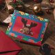Vibrant colored letters, trees, holly and cancy canes in a cheerful message suitable for a non-religious holiday greeting. I especially liked it on the black background which made the design pop.