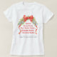 Hand painted red bow and silver bells personalized slogan, group and date, Christmas holiday t-shirt. Personalize with your own family name and fun wording currently reads Silver Bells Ring, Red Bows Swing, Berries Bring Holiday Bling. Unique art and design features a red bow and decorative silver coloured bells and a border with festive green foliage and red berries. Artwork is taken from an original hand painted in pan watercolors painting by artist and designer Sarah Trett exclusively for www.mylittleeden.com on Zazzle.