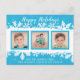 Happy Holidays Bright Blue Snowflakes 3 Photo Postcard