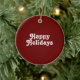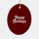 "Happy Holidays" burgundy maroon white Ceramic Ornament
