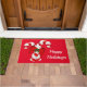 Doormat shown in red with a festive holiday candy canes print.
