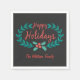 HAPPY HOLIDAYS | Bright and colourful hand-drawn chalk art style seasonal Christmas holiday paper napkins with casual hand-written retro typography, floral wreath with laurel and holly in red and green. Personalize it with your name or custom greeting. Click Customize It to change the background colour or font style. Family-friendly design is great for kids and young-at-heart adult. Make your holiday party table festive and fun for family, friends, neighbours, business customers, or co-workers. Cute, cheerful and whimsical, delightful modern and stylish way to express old fashion warm wishes for happy winter holiday celebrations with trendy rustic charm.