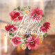 Happy Holidays white script over red flowers and greenery are featured on this window cling. Select ANY SIZE and *cling on the front (inside) or back (outside) of the window. (Size shown is 24" x 24", but can be made larger or smaller.)