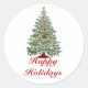 Happy Holidays, Christmas Tree with lights Classic Round Sticker