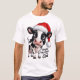 This white t-shirt features a cute cartoon calf wearing a red Santa hat with white trim and pompom. The calf is black and white with a pink nose and big, expressive eyes. To the right of the calf, the text "Happy Holidays from the COW" is printed in black. The overall design is festive and cheerful for the holiday season.