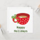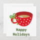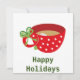 Cozy red teacup with green ribbons and "Happy Holidays" text