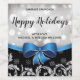 Elegant and easy to customize Wine label. Blue bow black background and beautiful silver accents.