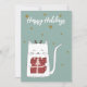 Happy Holidays Cute Cat with Gift Holiday Card