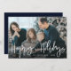 A modern design with bold text and white script lettering. Feel free to personalize the holiday image and add a warm greeting message at the back