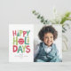 Send merry and bright holiday wishes with this colourful one-photo holiday card featuring fun and playful illustrations as part of the word "happy holidays." The back features colourful coordinating dots of confetti. Find matching address labels, gift tags and bags and more in Lea Delaveris Design's Happy collection.