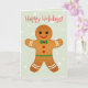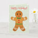 NewParkLane - Cute Christmas Card, with a cute little gingerbread man, and a "Happy Holidays!" wish in fun, handwritten font in red, against a sage green snowy background. The inside has a text template for your personal message.