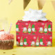 Festive black, red and green hand drawn cartoon gnomes and snowflakes Happy Holidays Christmas gift wrap.