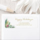 This stylish Christmas return address label is decorated with watercolor foliage and berries in red, green, and gold.