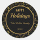 Happy Holidays Gold Leaves on Black Classic Round Sticker