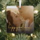 happy holidays gold handwriting wedding day photo Glass Ornament ,custom