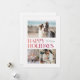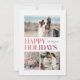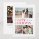 This 3-photo holidays card reads Happy Holidays and features simple ombre type in shades of red and pink on a white background. It has one large photo, and 2 smaller photos are on the front, with an additional photo on the back with space for a personal greeting.
