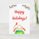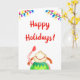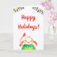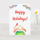 What better way to send holiday greetings than with this cheery Christmas elf? She's all decked out for the season, wearing her bright green outfit with red and white striped sleeves. To top it off, her curly green cap has a jingly bell on the top, which you'll see when you open up the card! The front of the card reads, "Happy Holidays", while the inside reads, "Have a wonderful day!". This could work well for anyone who is fond of Christmas elves, whimsical illustrations, bright colours and watercolour art.