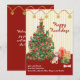 Happy Holidays Cute Chihuahua Christmas Card is festive and elegant. Hand painted watercolor ornaments, on a star topped tree and special presents, even a bone for the dog send a happy howlidays message. This Cute Chihuahua is wearing his special red bowtie hat. The background of the design is a yellow and cream stripe with a garland of sparkling gold stars. All of the text is editable, from the "happy howlidays" to the Christmas message with your family and dog's name. Just use the PERSONALIZE option to make it your own. The back of the card is a matching red with garland and and editable holiday message. You will find this beautiful Christmas card along with many other dog breeds in our CUTE FESTIVE DOG THEME HAPPY HOWLIDAYS collection in our store. Message if you need help.