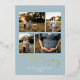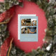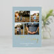 Modern Holiday card in pastel blue, customized with four images of your choice inside a delicate gold frame - real gold foil for Merry Christmas. Background colour and colour of the stripes on the backer can be changed in the design tool if you like.