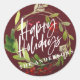 Happy Holidays modern chic watercolor foliage Classic Round Sticker