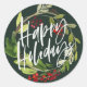 Happy Holidays modern chic watercolor foliage Classic Round Sticker