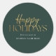 Happy Holidays Modern Green Gold Script Business Classic Round Sticker