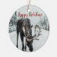 Happy Holidays Moose In Winter Christmas Ceramic Ornament