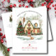 This festive moving announcement features the saying "Happy Holidays from Our New Home" with a beautiful watercolor house adorned with Christmas greenery. The announcement is perfect for sending to friends and family during the holiday season to let them know about your new address.