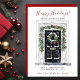 This watercolor Happy Holidays new home for the holidays announcement card with a festively decorated front door with pine boughs and trees, a wreath, and red holiday bows would be perfect to send to your friends and family now that you have moved to a new home. The sentiment is customizable. Get enough so that everyone you know and love has your new address. They'll be so excited about your big move!