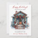 This rustic watercolor Happy Holidays new home for the holidays announcement card with a festively decorated wood front door with pine boughs and trees, a wreath, and red holiday bows would be perfect to send to your friends and family now that you have moved to a new home. The sentiment is customizable. Get enough so that everyone you know and love has your new address. They'll be so excited about your big move!