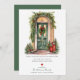 This festive moving announcement features the saying "Happy holidays from our new home" with a beautiful watercolor green front door adorned with pine branch garland. The announcement is perfect for sending to friends and family during the holiday season to let them know about your new address. The front of the announcement features the saying and watercolor green front door, and includes your new address and contact information. The overall design is festive and inviting, and the announcement is sure to put a smile on the faces of your loved ones.