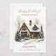 This watercolor Happy Holidays new home for the holidays announcement card with a festively decorated tudor with pine boughs and trees would be perfect to send to your friends and family now that you have moved to your new home. The sentiment is customizable. Get enough so that everyone you know and love has your new address. They'll be so excited about your big move!