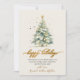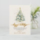 Modern Elegant Calligraphy Happy Holidays Script Christmas Tree Non Photo Christmas Cards. This festive simple minimalist Holiday cards features a watercolor christmas tree with decoration gold balls and confetti and a „Happy Holidays” greeting text which is written in a nice hand lettered font type in gold on cream white or beige background. On the reverse side golden glitter snow or sparkling gold confetti on dusty green background. This festive Custom Personalized Cards are a great way to remind loved ones that you're thinking of them this Winter Holiday Season.