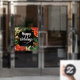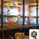 Orange slices, cinnamon sticks, poinsettias and greenery are featured on this window cling along with any text you choose. - Select ANY SIZE and *cling on the front (inside) or back (outside) of the window. (Size shown is 24" x 24", but can be made larger or smaller.)