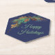 Happy holidays Paper Coaster. Blue & green Christmas wreath design