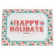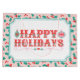 This gift bag features a cheerful Happy Holidays greeting in a modern victorian style typography on a pink and red holly background.
