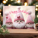 Happy Holidays Pink Gnomes Christmas Holiday Card